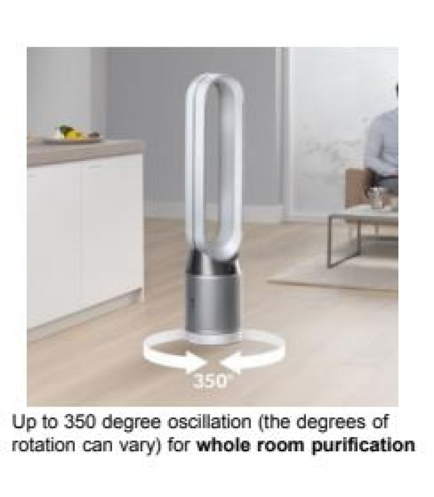 Up to 350 degree oscillation (the degrees of rotation can vary) for whole room purification